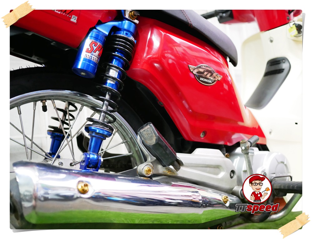 • สีแดงโช๊คหลังแต่ง SPN สีน้ำเงิน